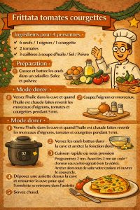 Allumettes canard pommes de terre Blanquette boudins blancs Boeuf moutarde Boeuf catalane Frittata tomates courgettes Oeufs lait caramel
