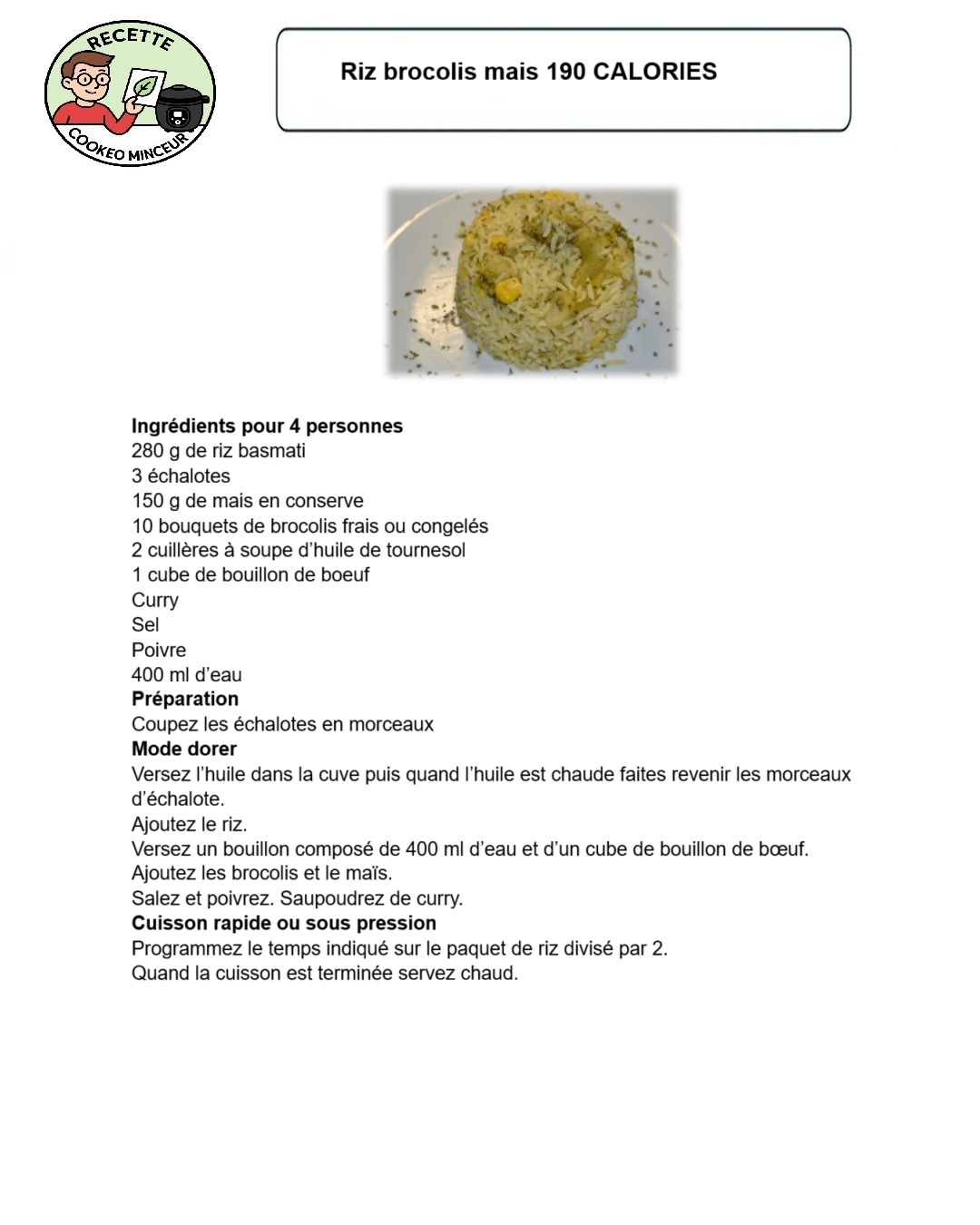 Vous trouverez dans cette article 2 fiches recettes cookeo light à moins de 200 calories