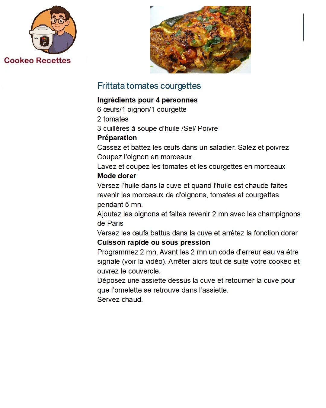 Frittata tomates courgettes au cookeo la fiche Quelle fiche préférez -vous ?