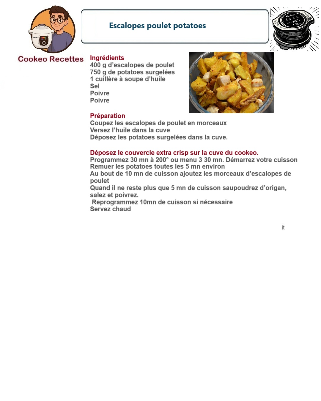 Escalopes poulet potatoes