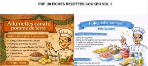 En cliquant sur l’image vous pourrez télécharger gratuitement ce PDF de 20 recettes cookeo en fiches nouvelle version .Ce PDF comporte 10 recettes cookeo traditionnelles et 10 fiches recettes cookeo light . Ces fiches ont été publiées sur ma page